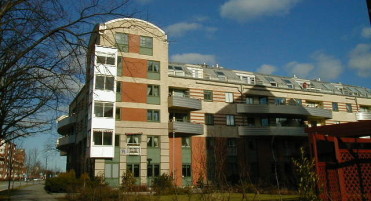 Här kan vi erbjuda boende i absoluta centrum men ändå med ett lugnt och avskilt läge. Lägenheter med hög standard och inglasade balkonger. Liten skyddad innergård med gemensam uteplats.